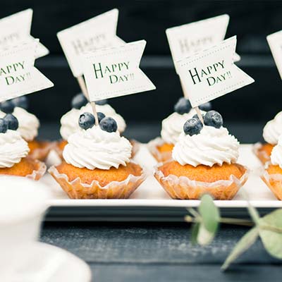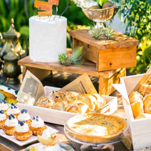 パーティー終盤の楽しみとしておススメのデザートビュッフェ。地元のケーキ工房とオリジナルでつくりあげるデザートでゲストに楽しい思い出を。