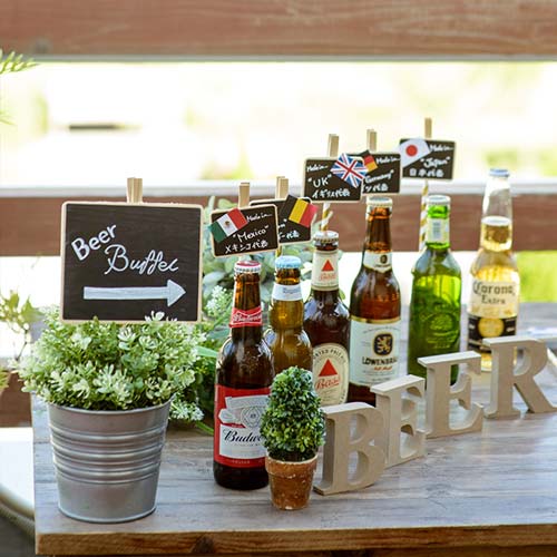 BLOOM by maruya gardensで人気の演出。国内のブランドから、イギリスやアメリカ、ドイツのビールまで種類豊富なビールをスタイニースタイルでお楽しみいただけます。